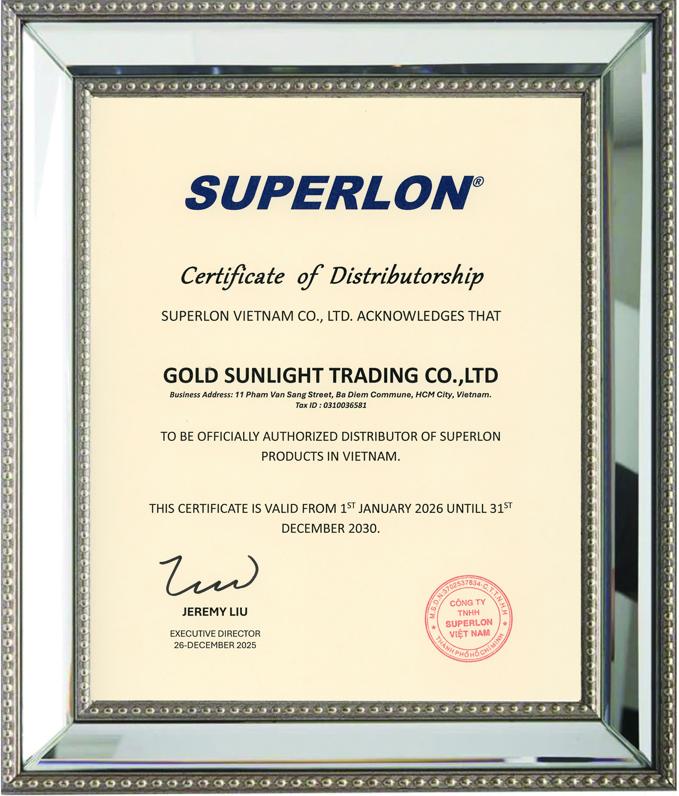 Công ty TNHH TM Ánh Dương Vàng được Superlon Worldwide Malaysia ủy quyền nhập khẩu và phân phối chính thức tại Việt Nam từ năm 2010 cho đến nay.